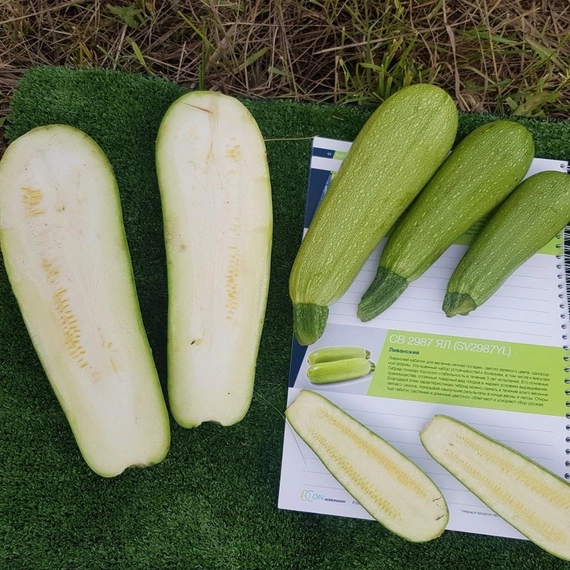 СВ 2987 ЯЛ F1 от компании Seminis – это современный раннеспелый гибрид кабачка сортотипа «Ливанский», отличающийся высокой продуктивностью, отличной выравненностью плодов и комплексной устойчивостью к заболеваниям. Период от полных всходов до первого сбора составляет 40-45 дней. Гибрид предназначен для выращивания в открытом грунте и рекомендован для всех сезонов (весенне-летне-осенний оборот).