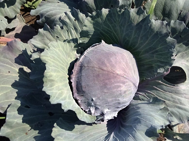 Кочан: 1,2-2,0 кг, округлый, плотный, красный (фиолетовый)