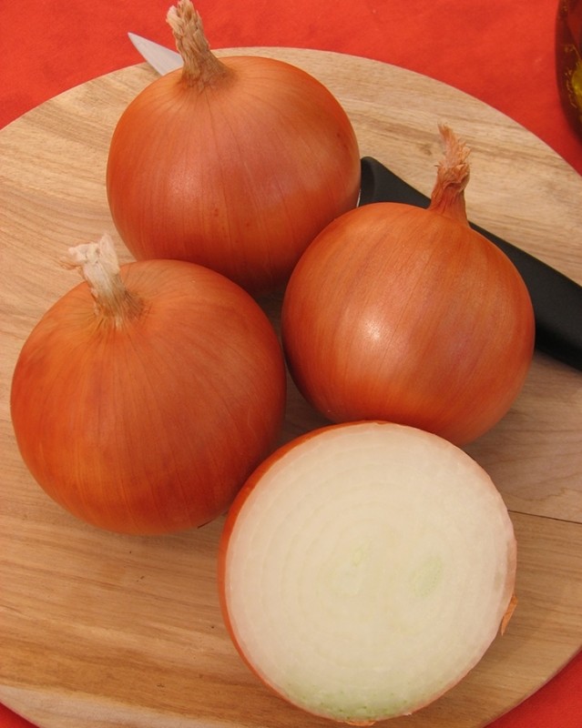 Луковицы округлой формы, очень плотные, выровненные, диаметром 60-80 мм (средне-крупные). Сухие покровные чешуи имеют привлекательный бронзово-коричневый цвет, сочные чешуи — белые. Шейка тонкая, хорошо подсыхающая, что обеспечивает качественное хранение. Гибрид демонстрирует стабильно высокую урожайность — 80-100 т/га (до 13 кг/м²), отлично подходит для механизированной уборки и длительного хранения (до 4 месяцев, до февраля-марта).