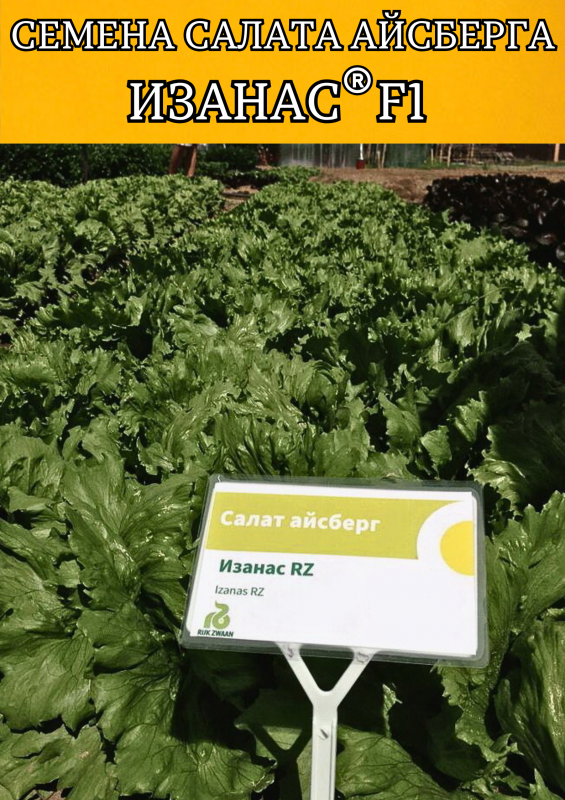 Изанас F1 — среднеранний гибрид кочанного салата от компании Rijk Zwaan типа Айсберг. Большой период формирования кочана и комплексная устойчивость делают его технологичным выбором для товарного производства.