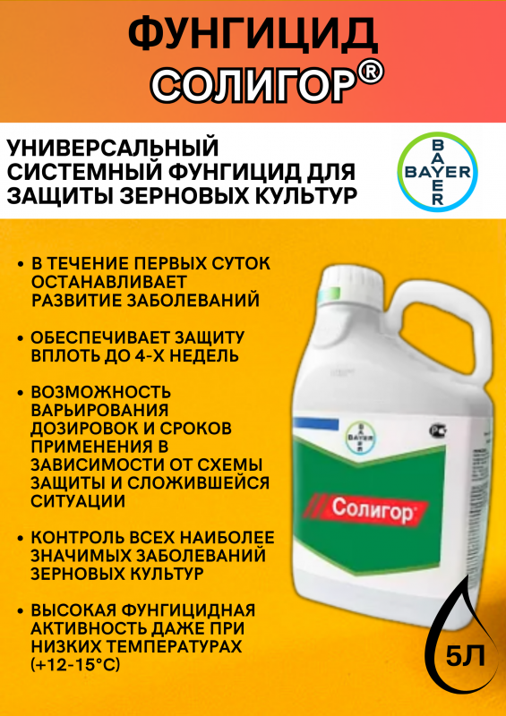 Солигор - универсальный системный фунгицид профилактического, лечебного и искореняющего действия для защиты зерновых культур от комплекса заболеваний.